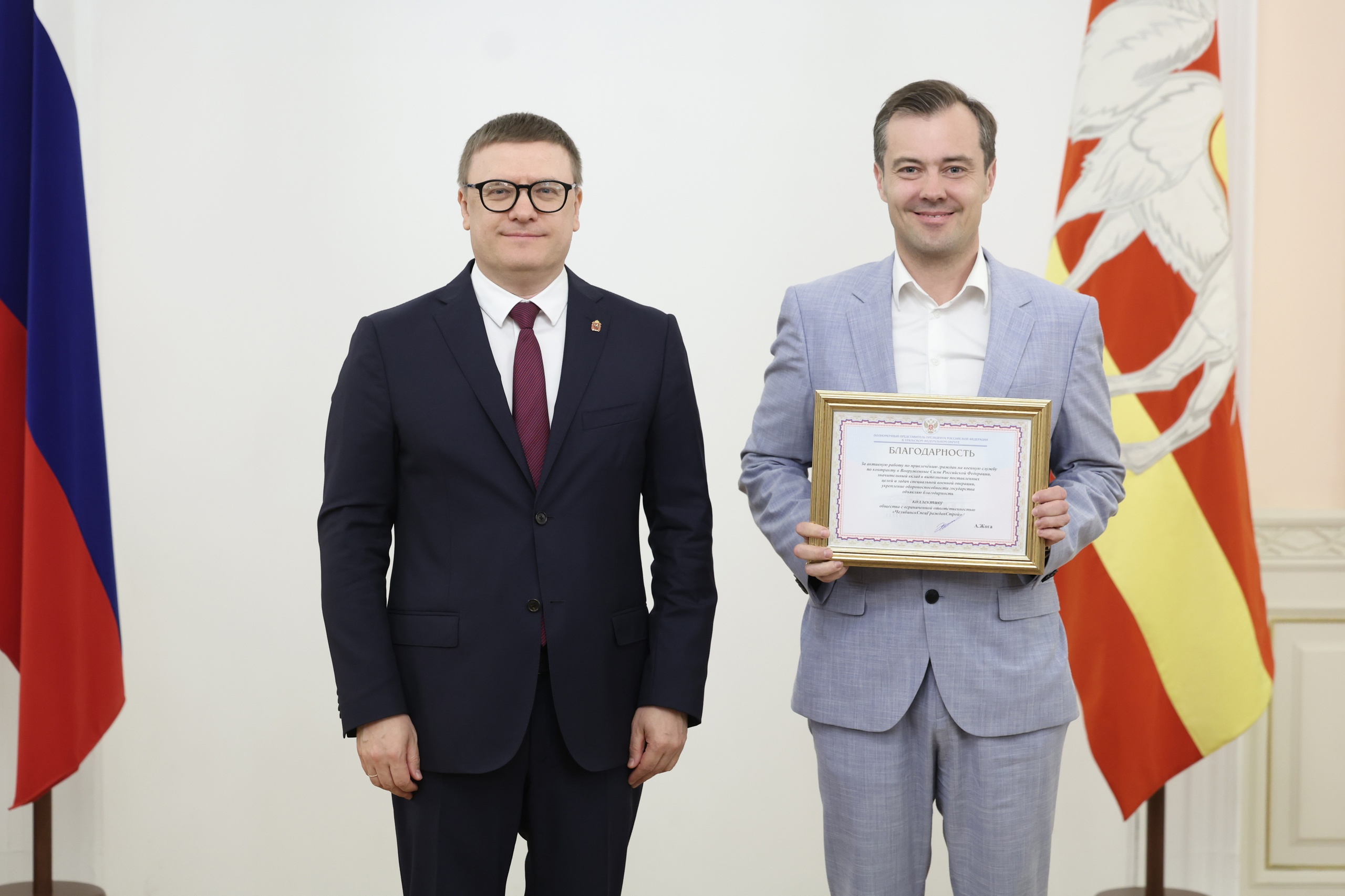 Губернатор Челябинской области Алексей Текслер вручил государственные и областные награды жителям региона. Коллективы ГК ЛД и ПАО ЧКПЗ (оба предприятия входят в Союз машиностроителей России) отмечены благодарностями полномочного представителя президента Российской Федерации в УрФО Артёма Жоги. Награду из рук губернатора Челябинской области получили руководитель ГК ЛД Дмитрий Левин и генеральный директор ПАО ЧКПЗ Андрей Гартунг.… Читать далее Коллективы промышленных предприятий отмечены правительственными наградами