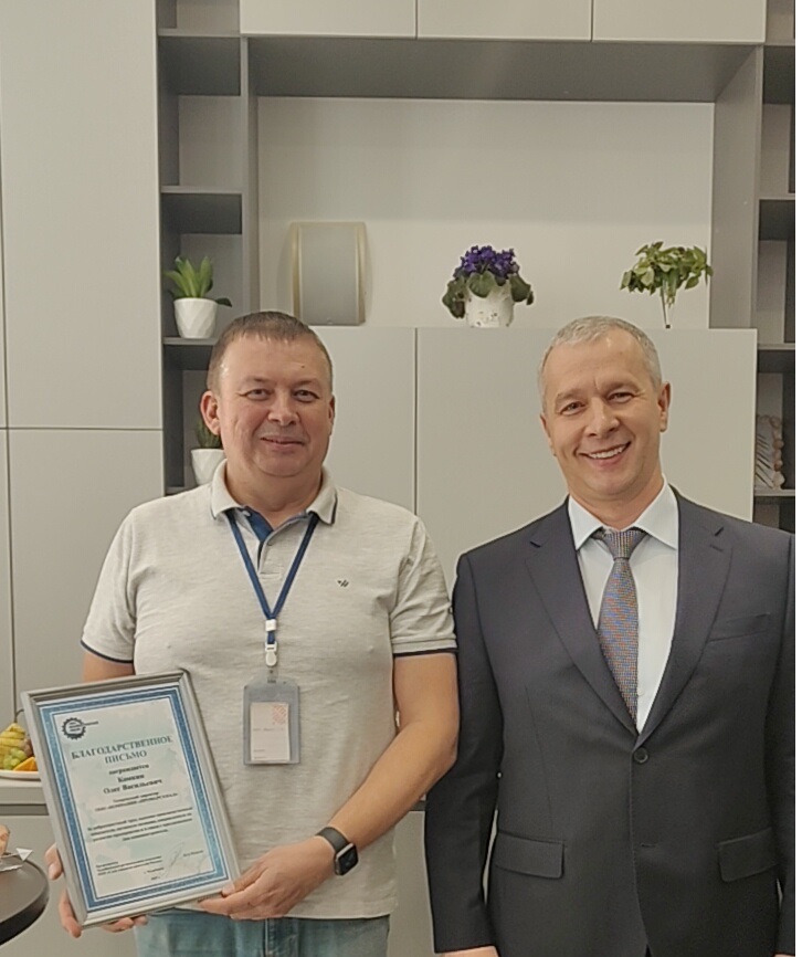 В торжественной обстановке в здании инженерно-технологического центра директор компании Валерий Шегуров и технический директор Олег Комкин получили благодарственные письма за многолетний добросовестный труд и большой личный вклад в развитие промышленности Челябинской области.
