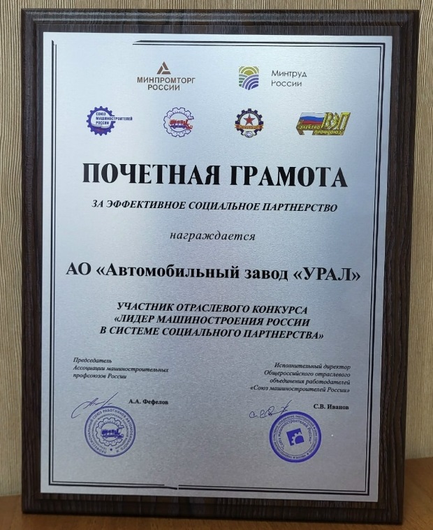 Автозавод «УРАЛ» получил награду за эффективное социальное партнёрство