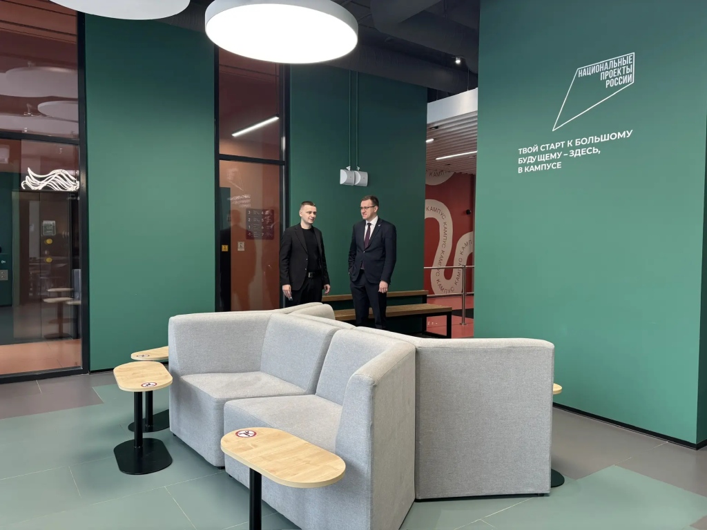 Экскурсию для гостя провёл управляющий межуниверситетским кампусом Ян Бурнашов, который отметил высокую востребованность пространства: «На данный момент у нас заняты 99% комнат. У каждого вуза есть «лист ожидания» для освободившихся площадей. Жить в кампусе престижно и комфортно, здесь вся инфраструктура выстроена с учётом потребностей проживающих».