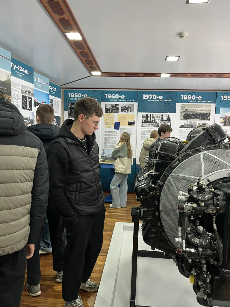 Ребятам была проведена экскурсия по производственным участкам цеха № 2 ремонта двигателей и музейной экспозиции завода.